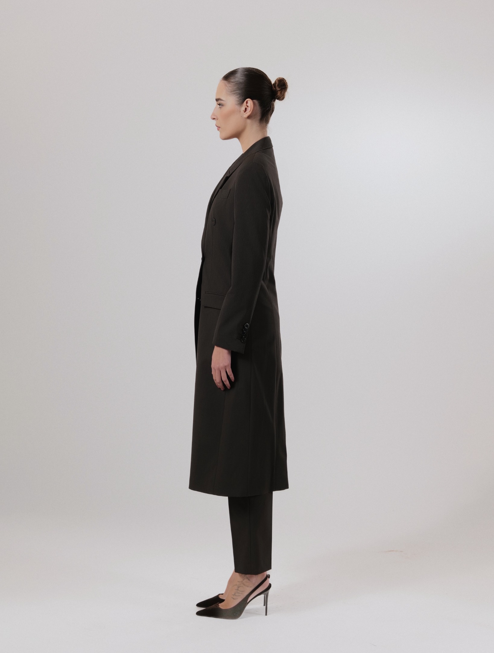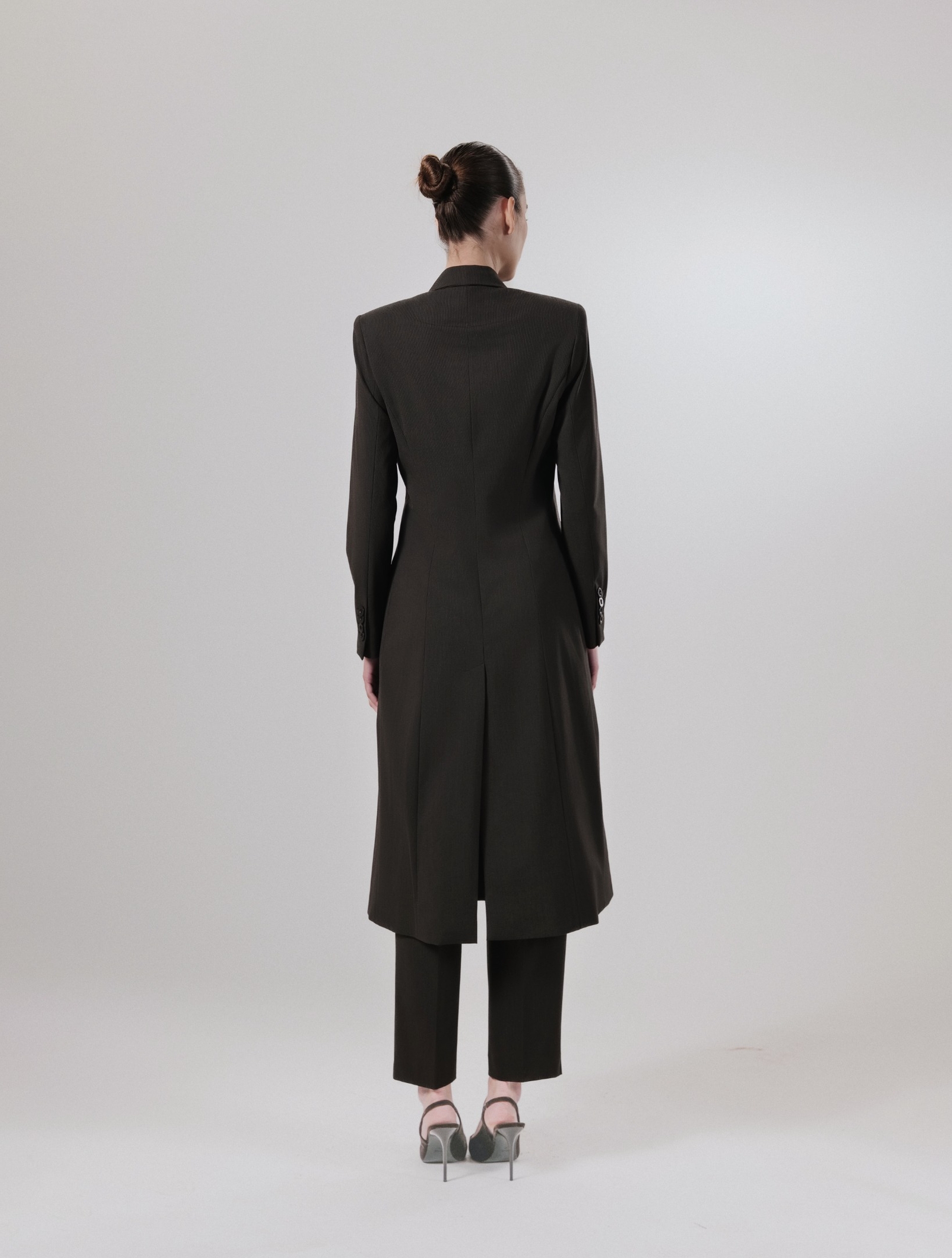 The “Espresso Bean” long double breasted blazer